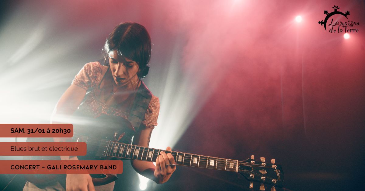 - Dans le cadre de Terre de Blues, la Maison de la Terre vous invite au concert du groupe Gali Rosemary Band, Samedi 31 janvier à 20h30.
